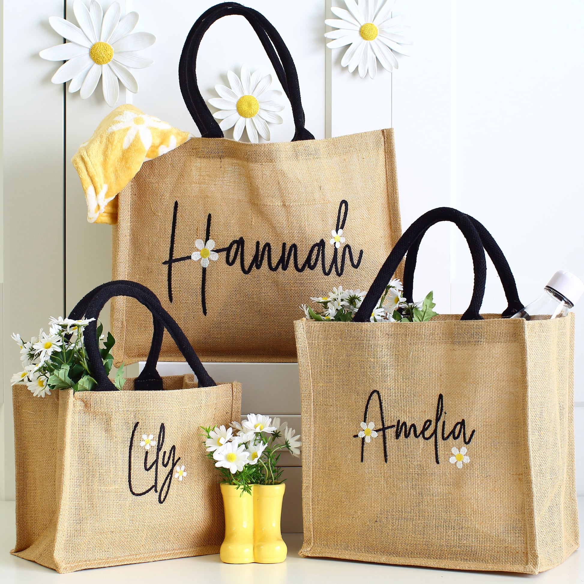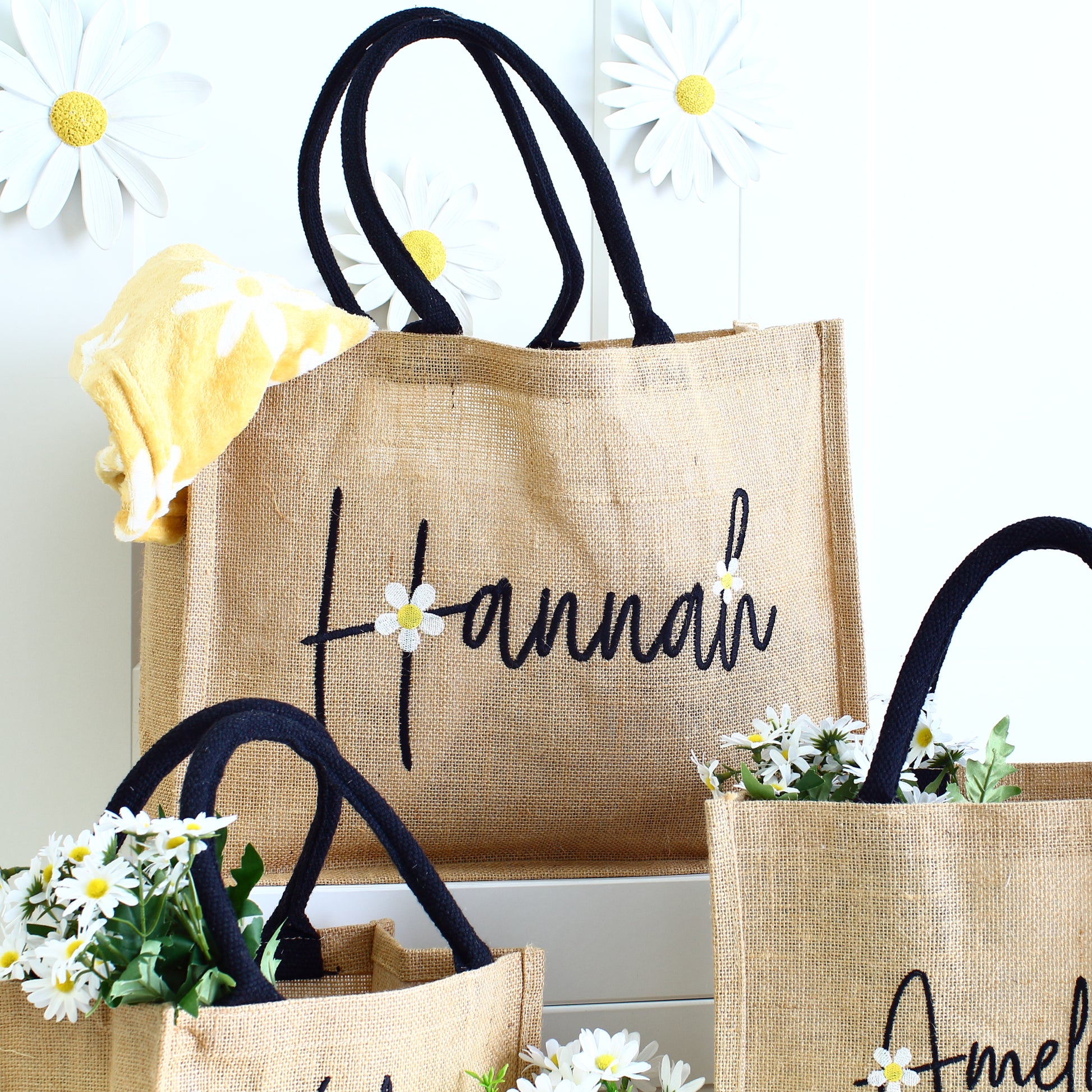 The cutest Daisy embroidered tote bags for every occasion, available in 3 versatile sizes that will take you from Gift Bag and or Lunch bag, through to shopping trips, beach trips and everything inbetween.  The perfect eco-friendly gift for the deserving recipient.