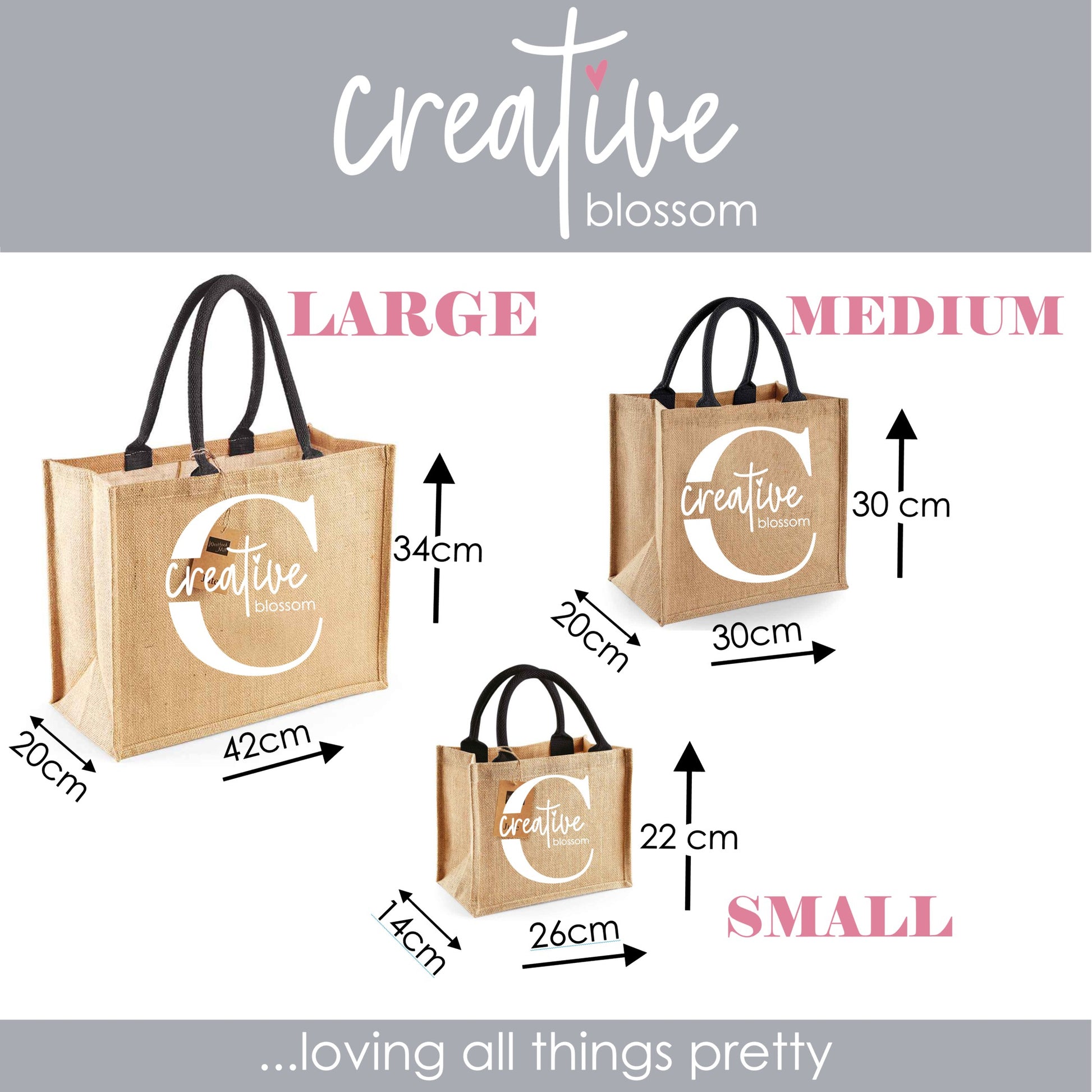 Please scroll through all the photos to see how gorgeous our bags are and to view the bag sizes and the font we use.