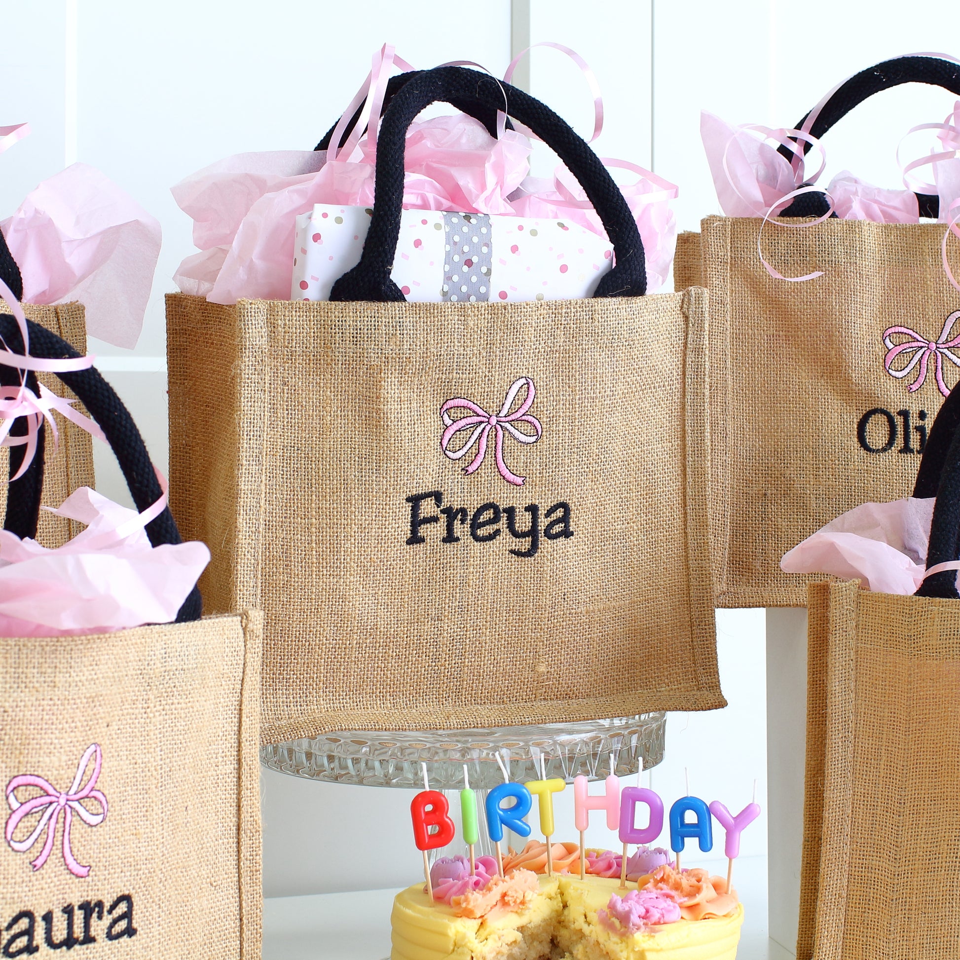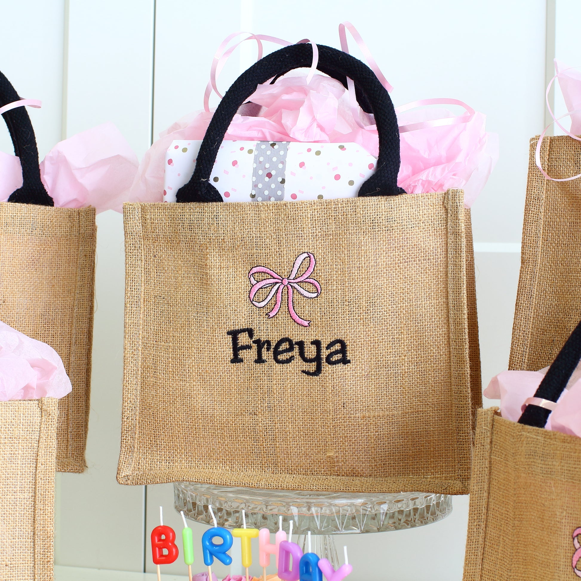 Birthday party, Sleepover party, whichever it is make sure you order these luxury embroidered party bags for the big day! Re-usable as a tote bag or lunch bag after the event they're the perfect finishing touch for your girly party.