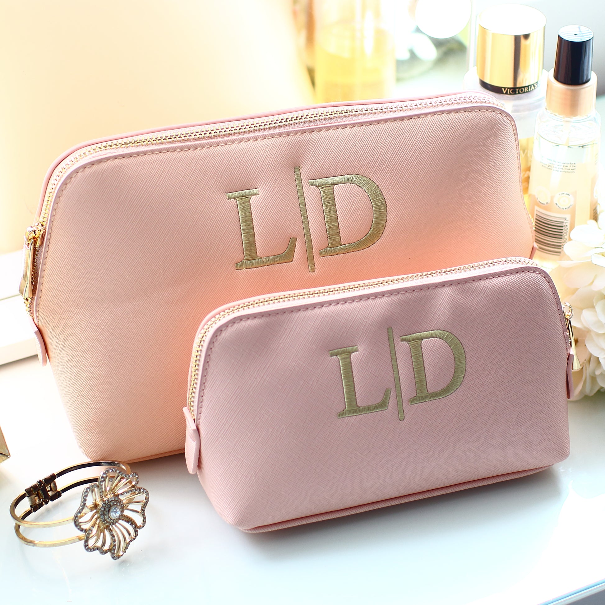 *Soft pink makeup bags - Antique gold