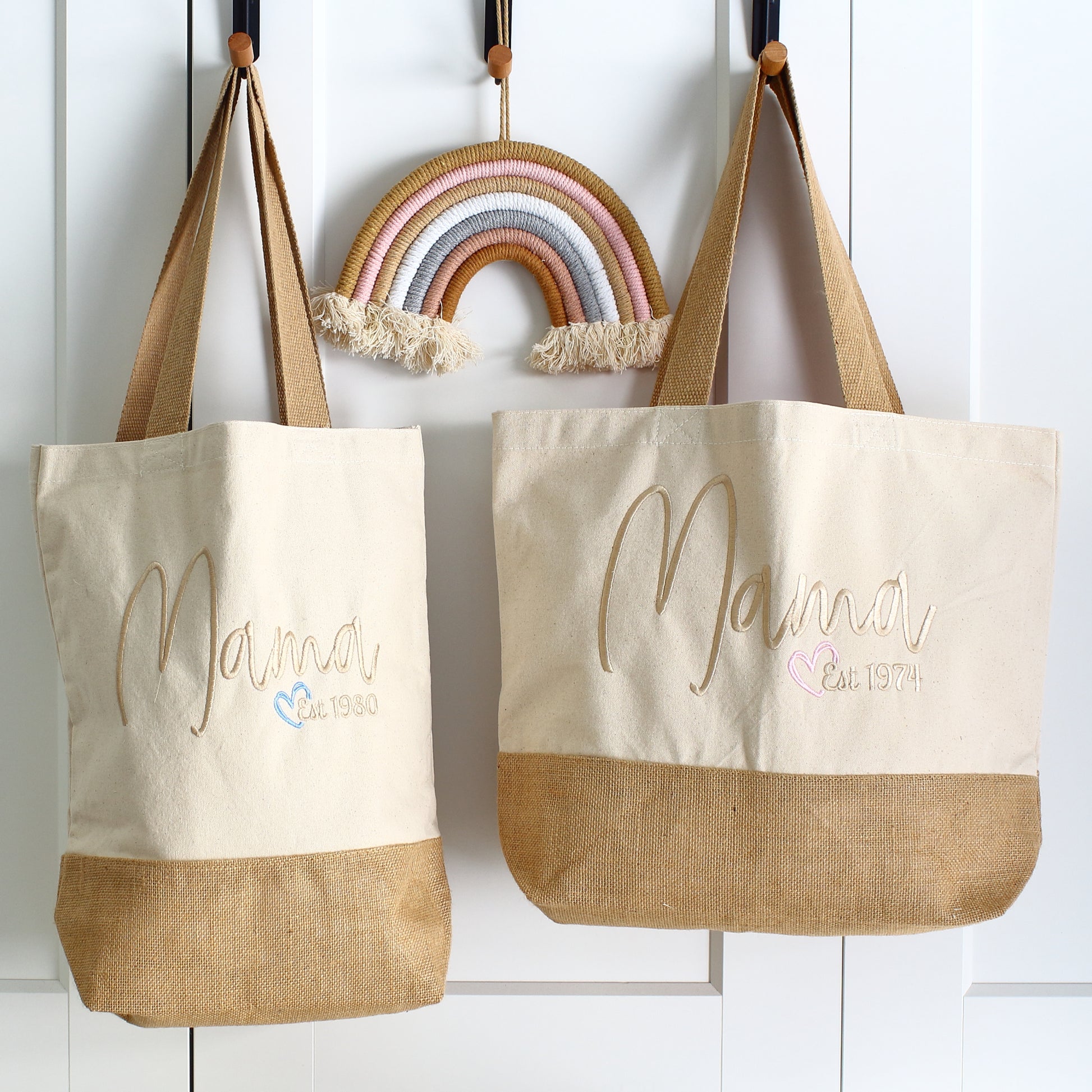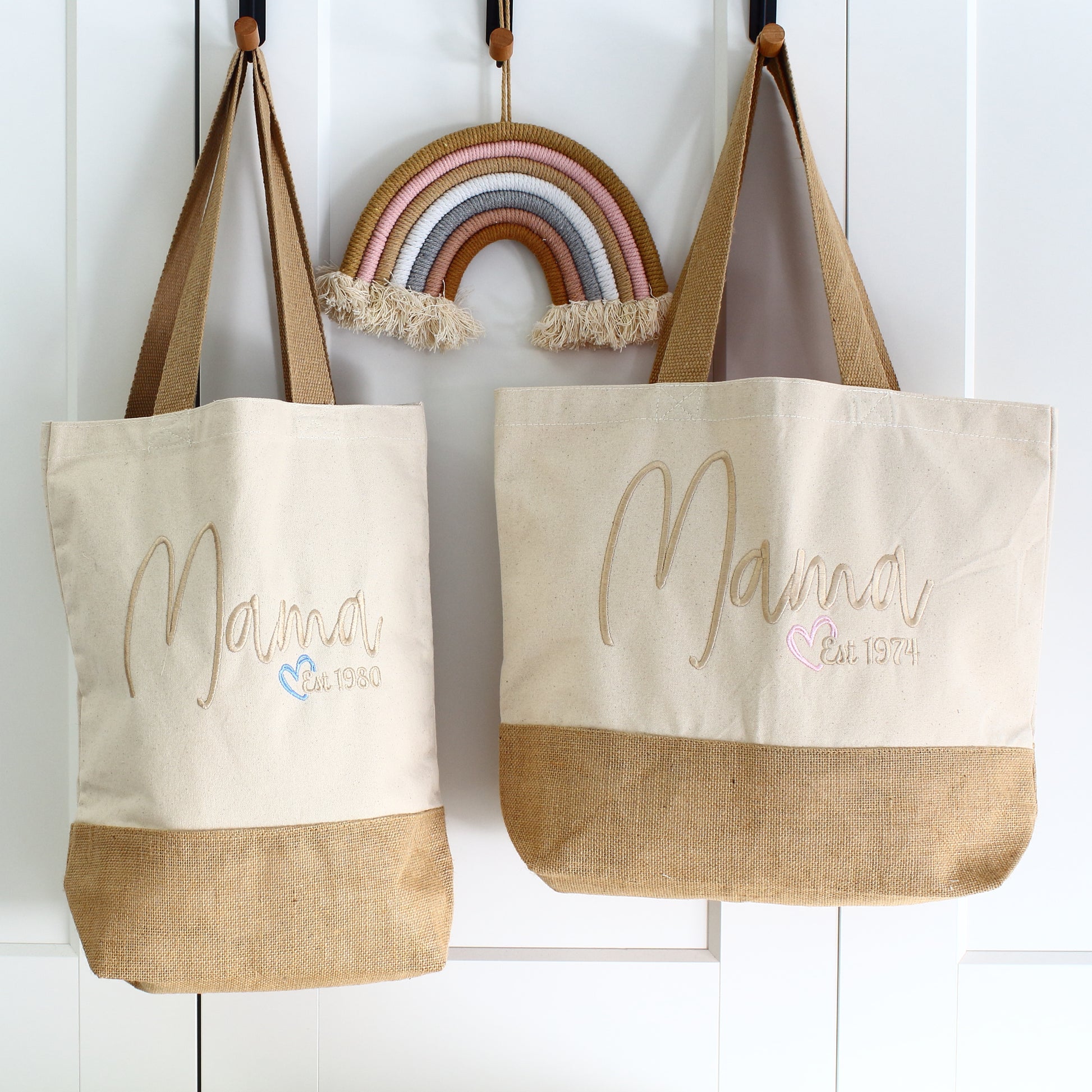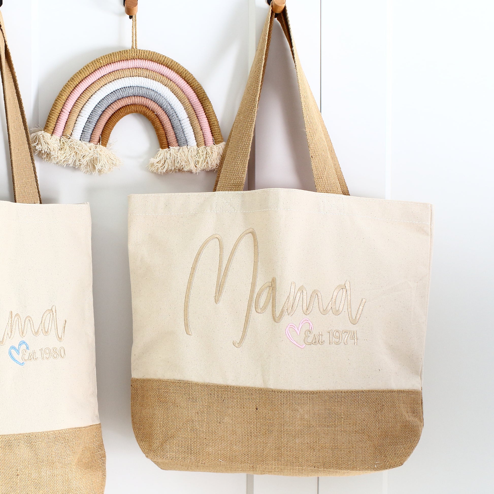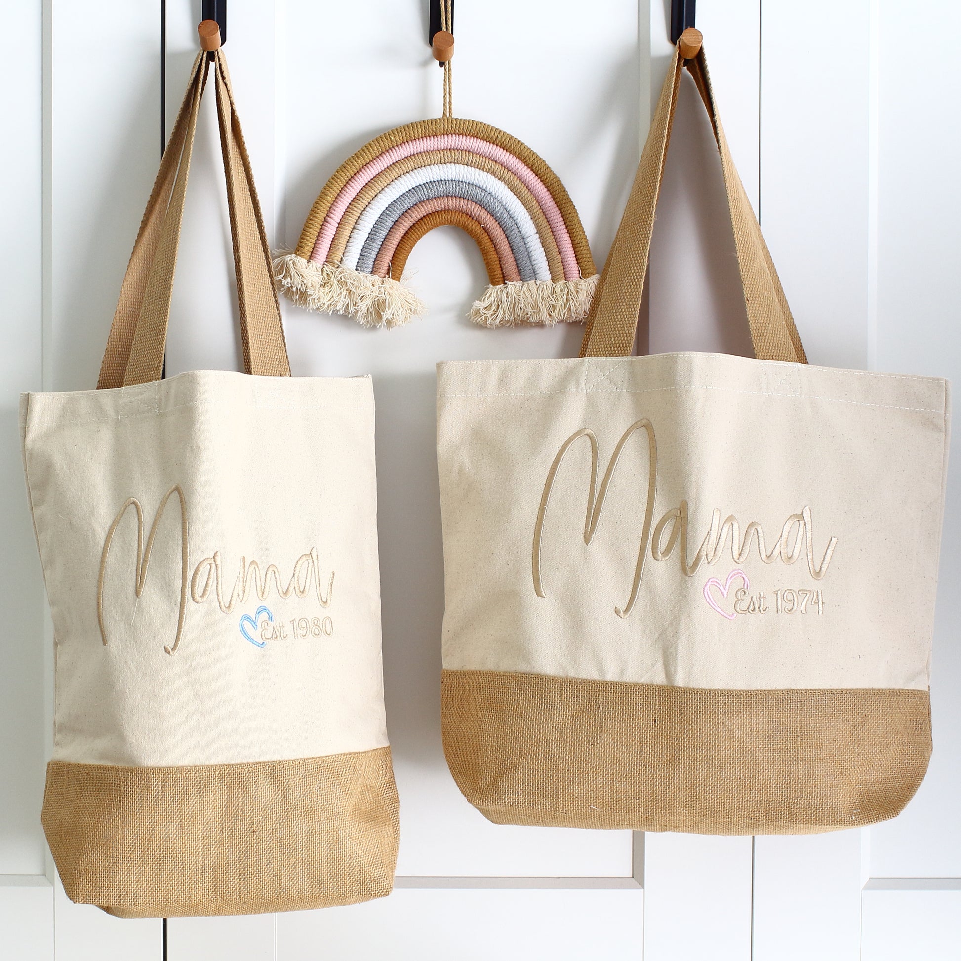 These lovely hard-wearing bags are a bag for life, large enough for day-to-day shopping trips, travel, family picnics and so much more. Personalise this bag with your choice of thread colour for the heart and an est date for a memorable gift.