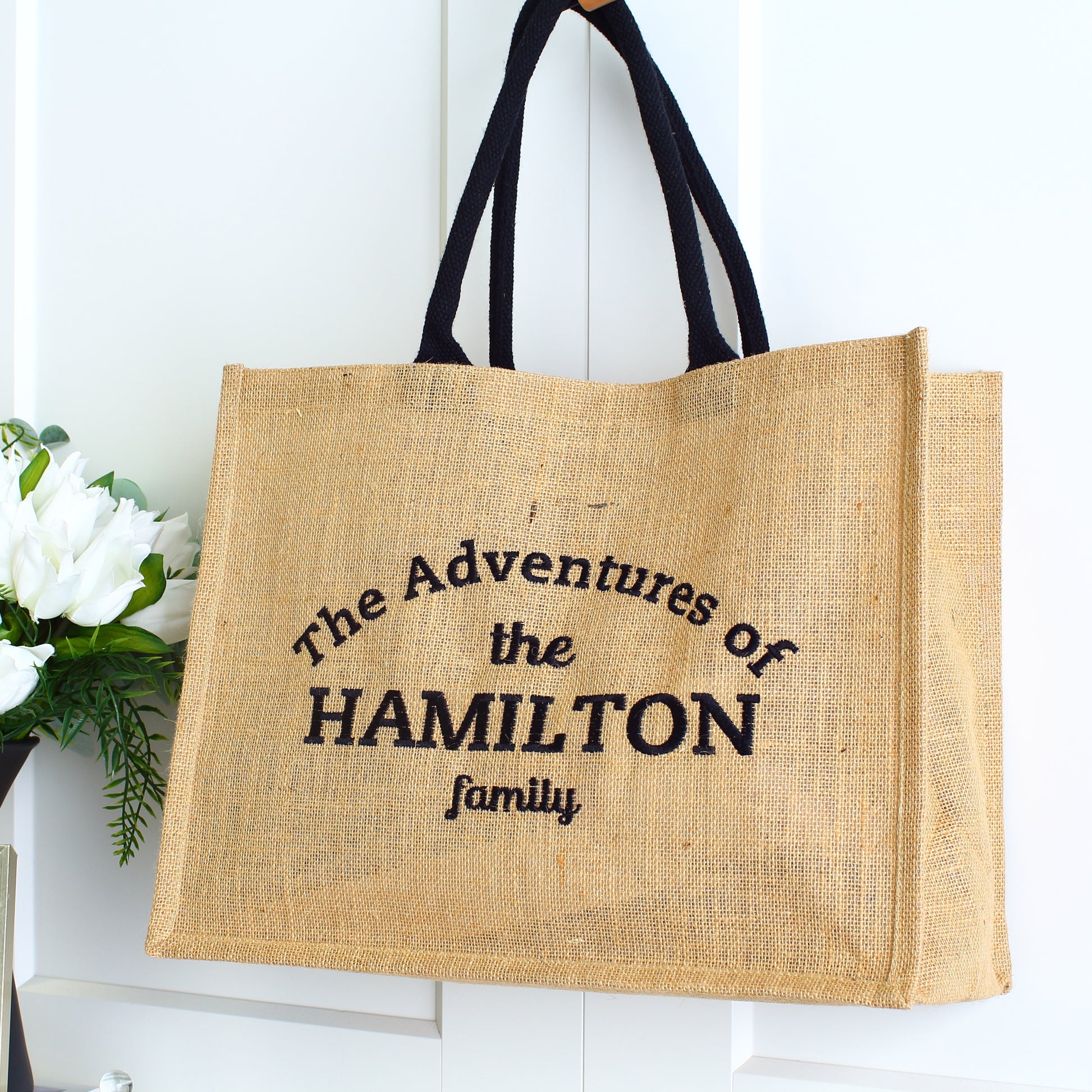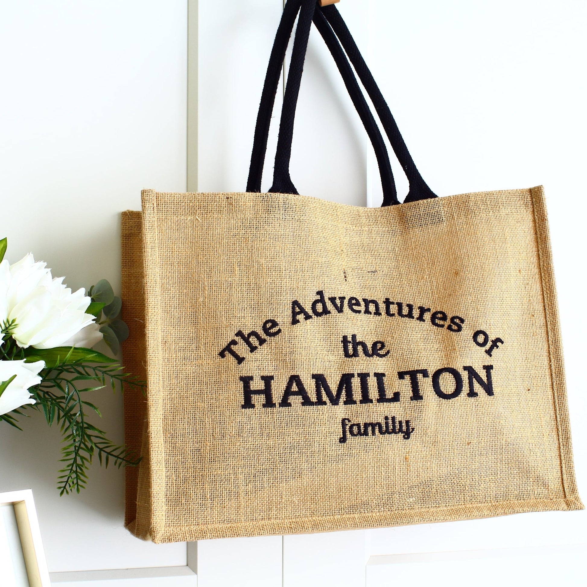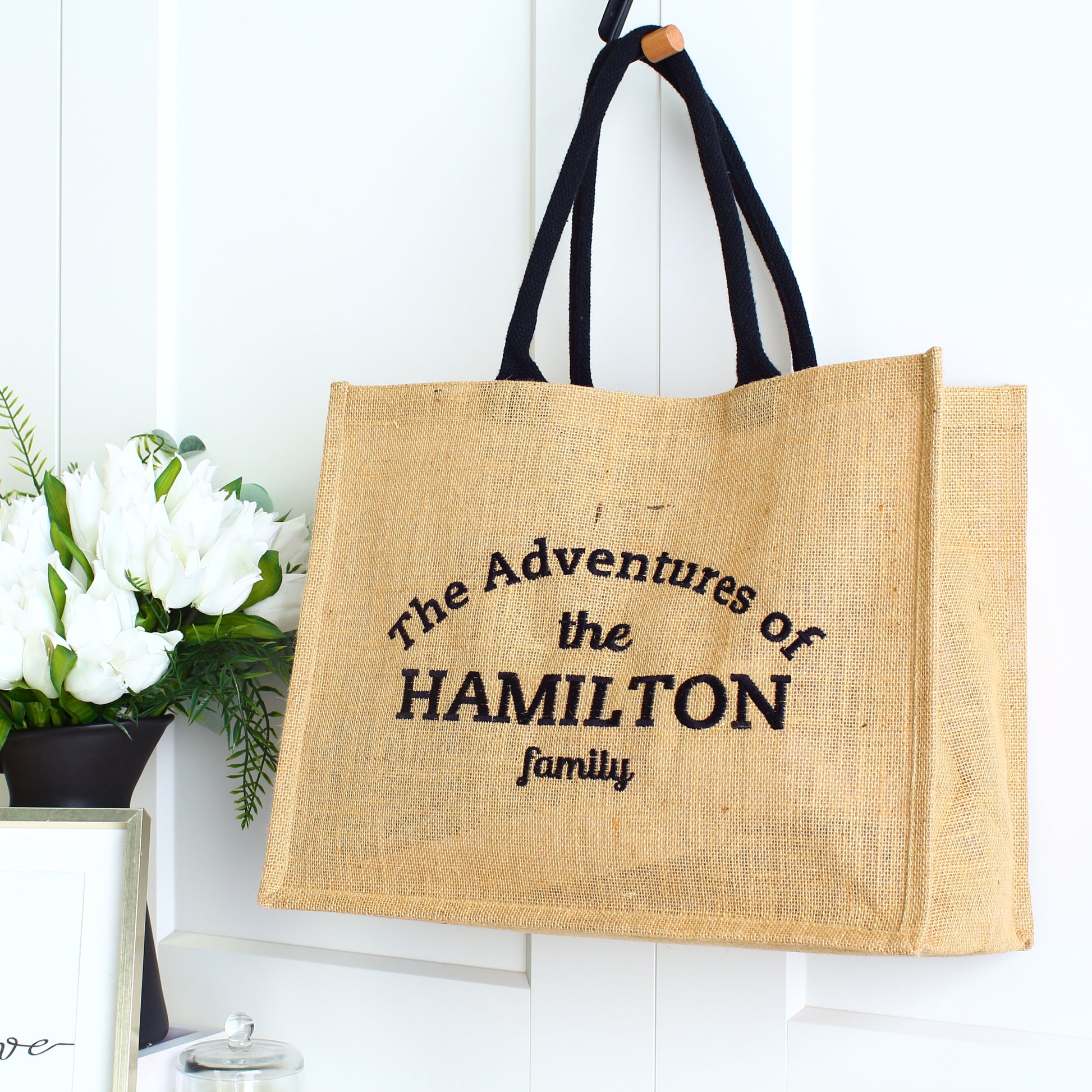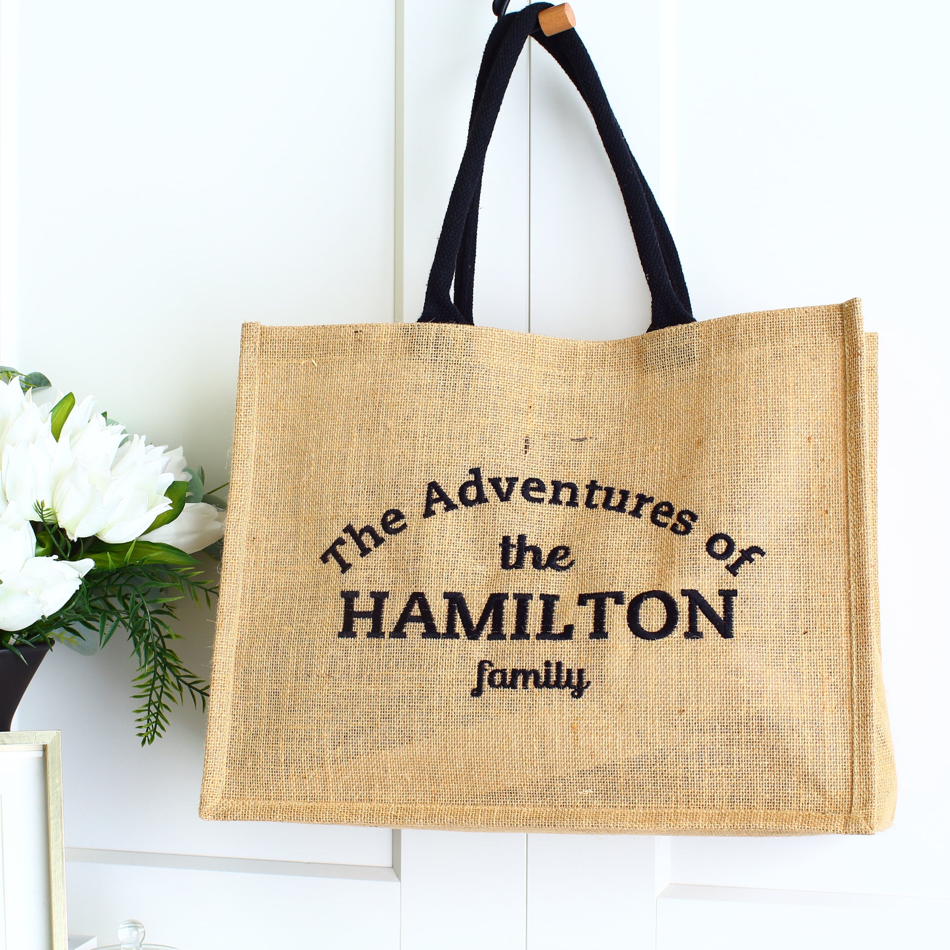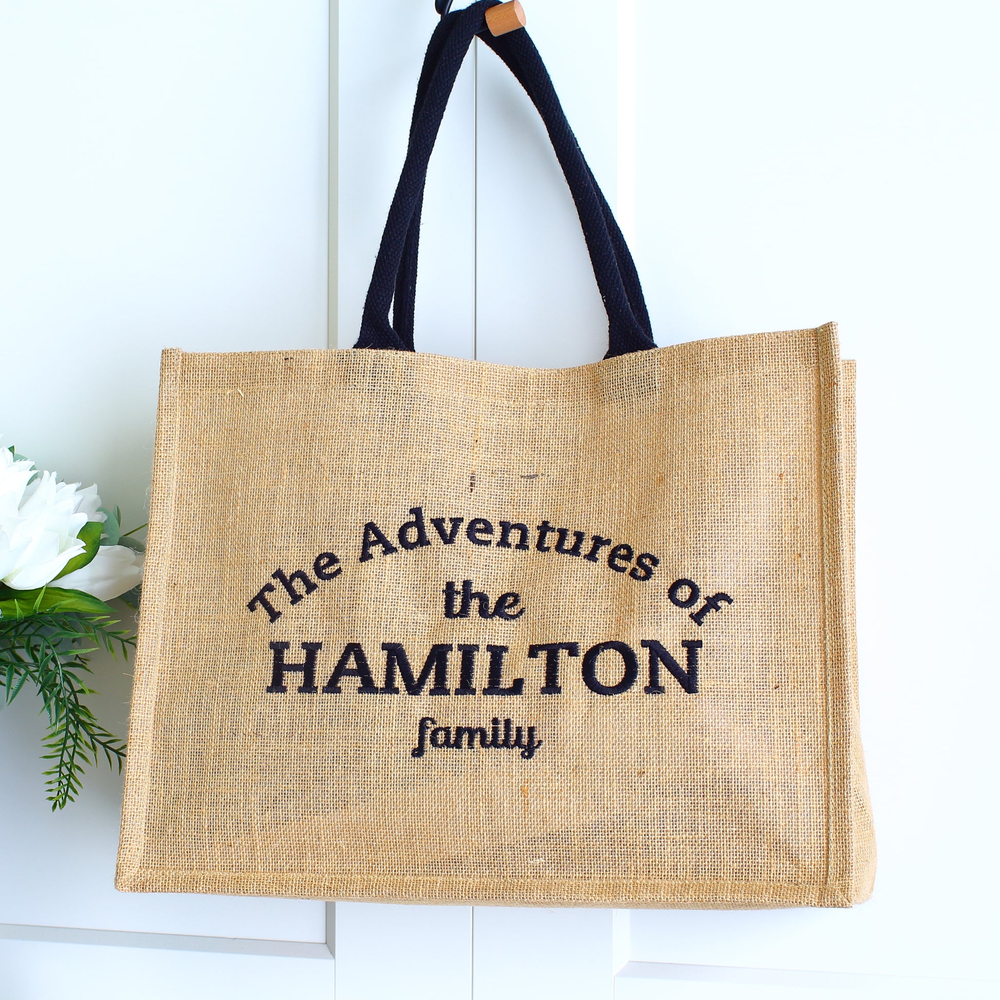 Family picnics, day trips, weekends away, wherever you're going make memories with our beautiful personalised family tote bag. Made from hard-wearing Jute and a laminated lining it's both practical and stylish for all your adventures.