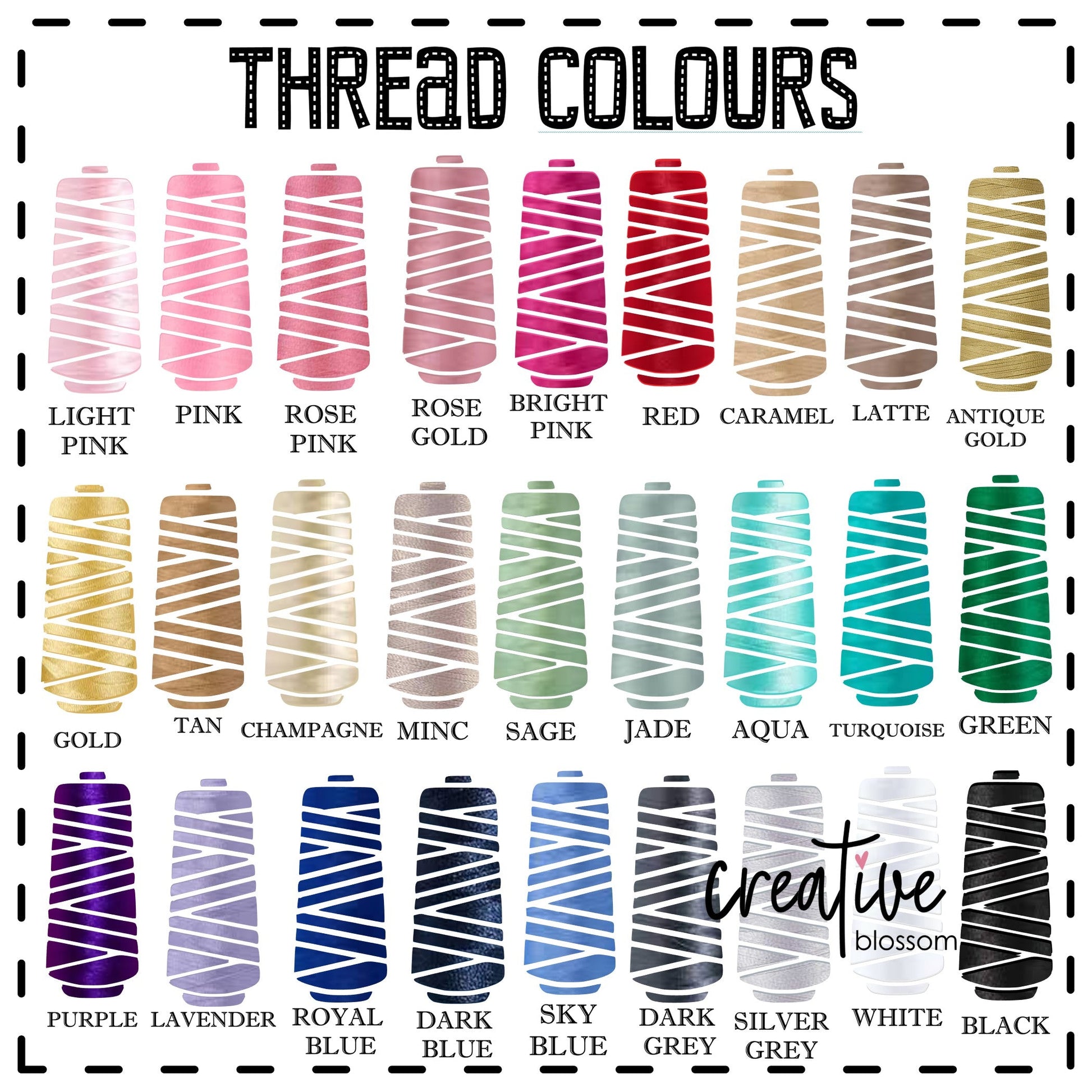 Please select your thread colour from the drop-down menu, we used Black in the example photo.