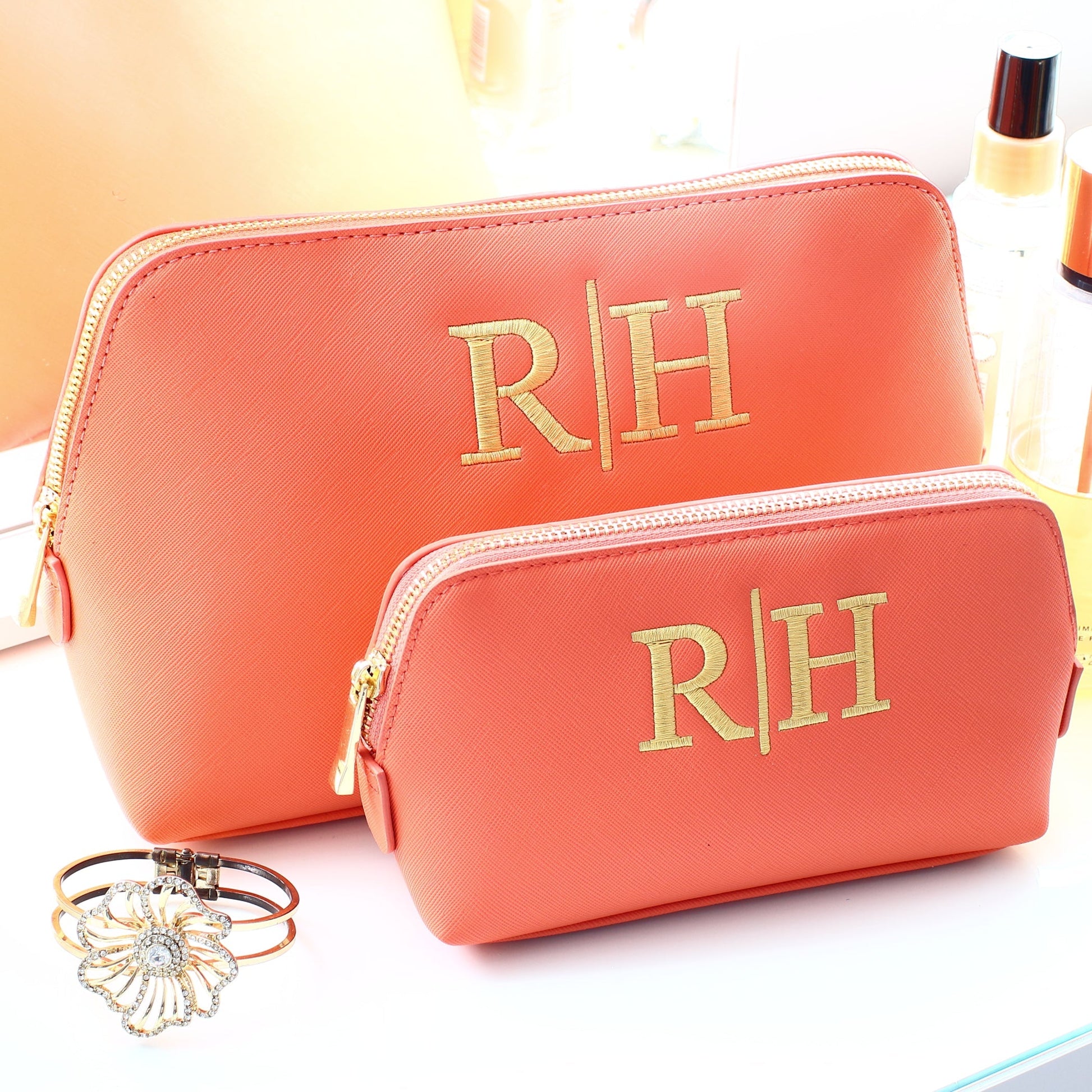 *Coral makeup bags - Antique gold
