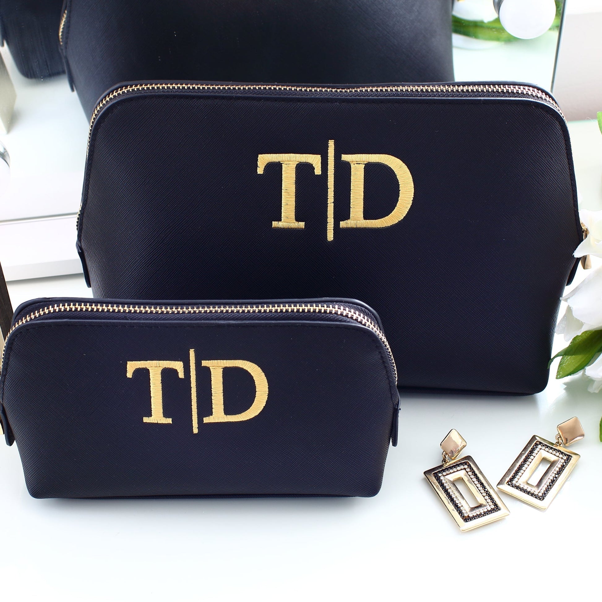 Our stunning embroidered cosmetic bags are luxurious and exude sophistication and style. Available in two practical sizes to house all your makeup and toiletry essentials whether you're home or away.