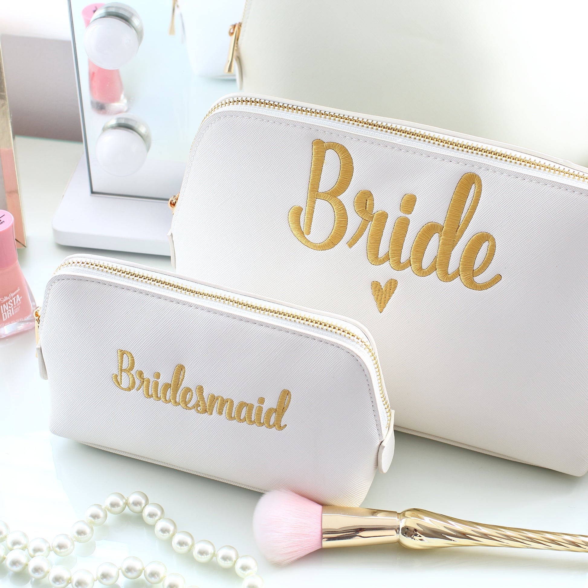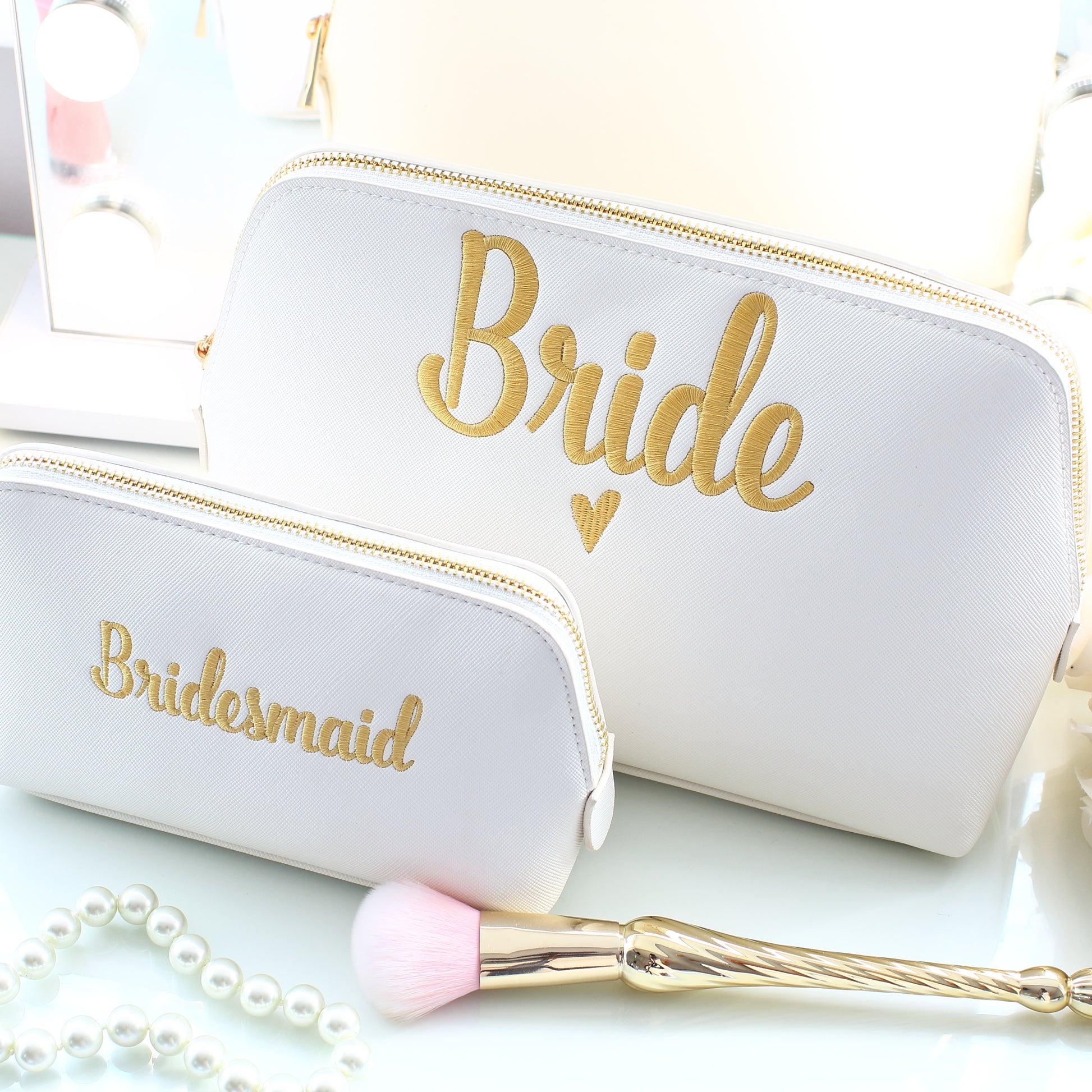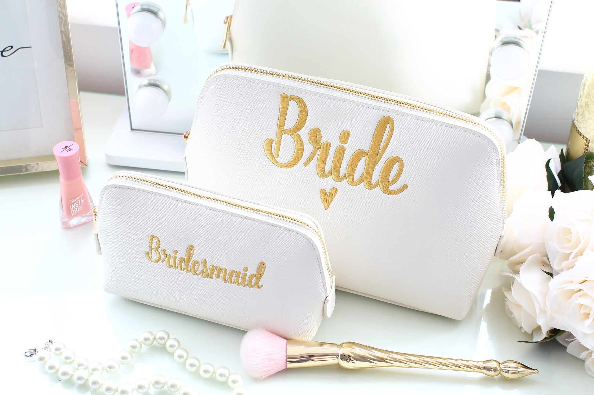 The perfect wedding day makeup bags, nothing beats embroidery don't settle for less, our embroidered makeup bags are luxurious and exude sophistication and style.
