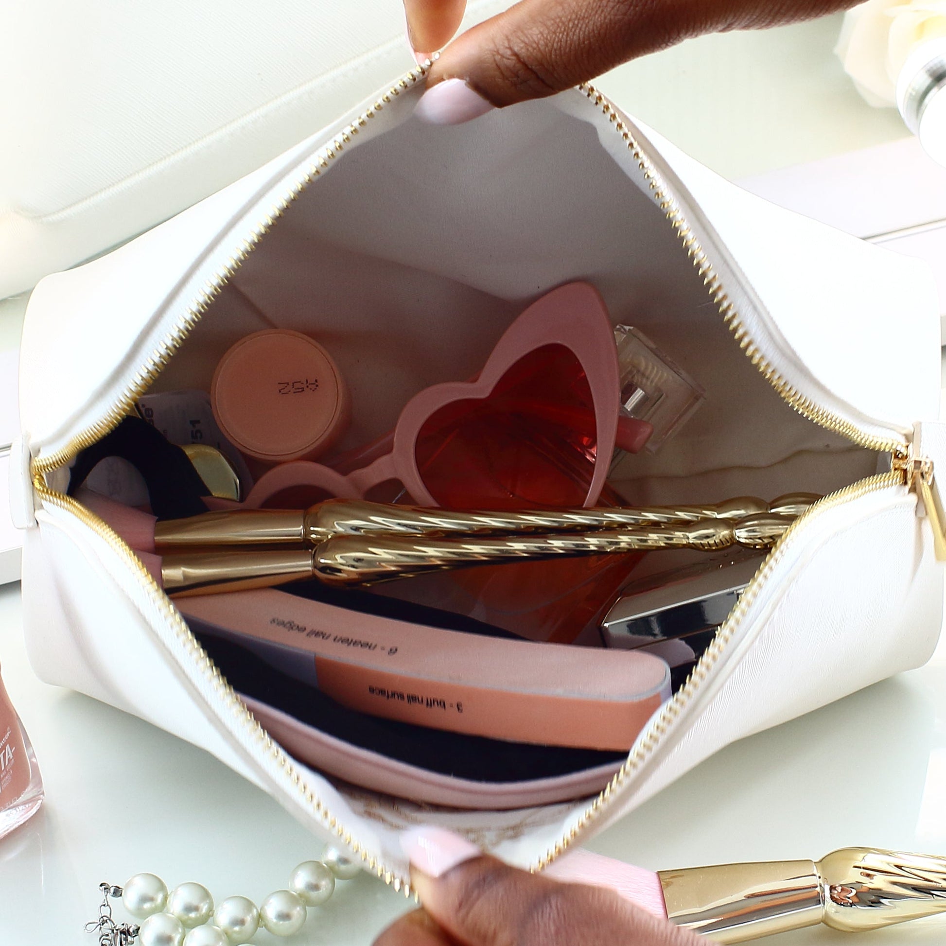 *Rose gold makeup bags - Latte thread