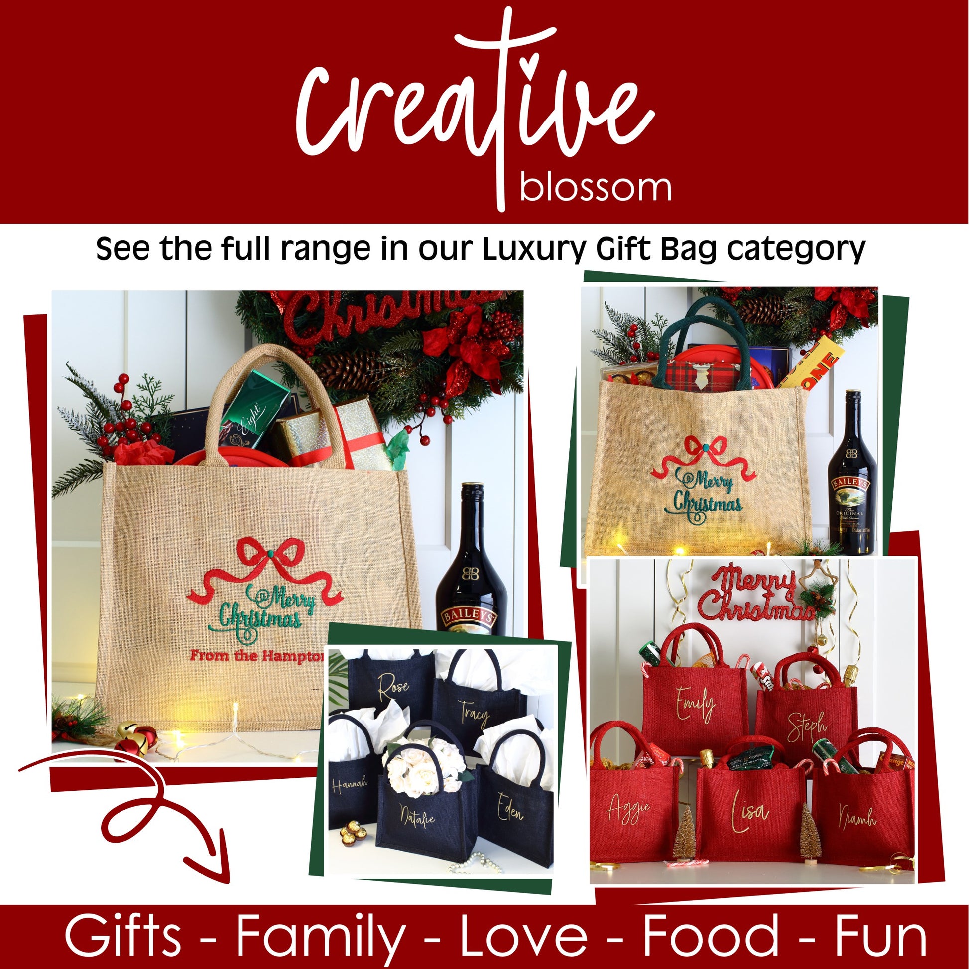 Our stunning medium eco-friendly hamper style bag boasts over 16,000+ embroidery stitches. This luxury bag-for-life tops all other gift bags and is a beautiful way to present an array of chocolates and gifts for the deserving recipients. Fill this bag with chocolates and culinary delights for the ultimate personalised hamper.